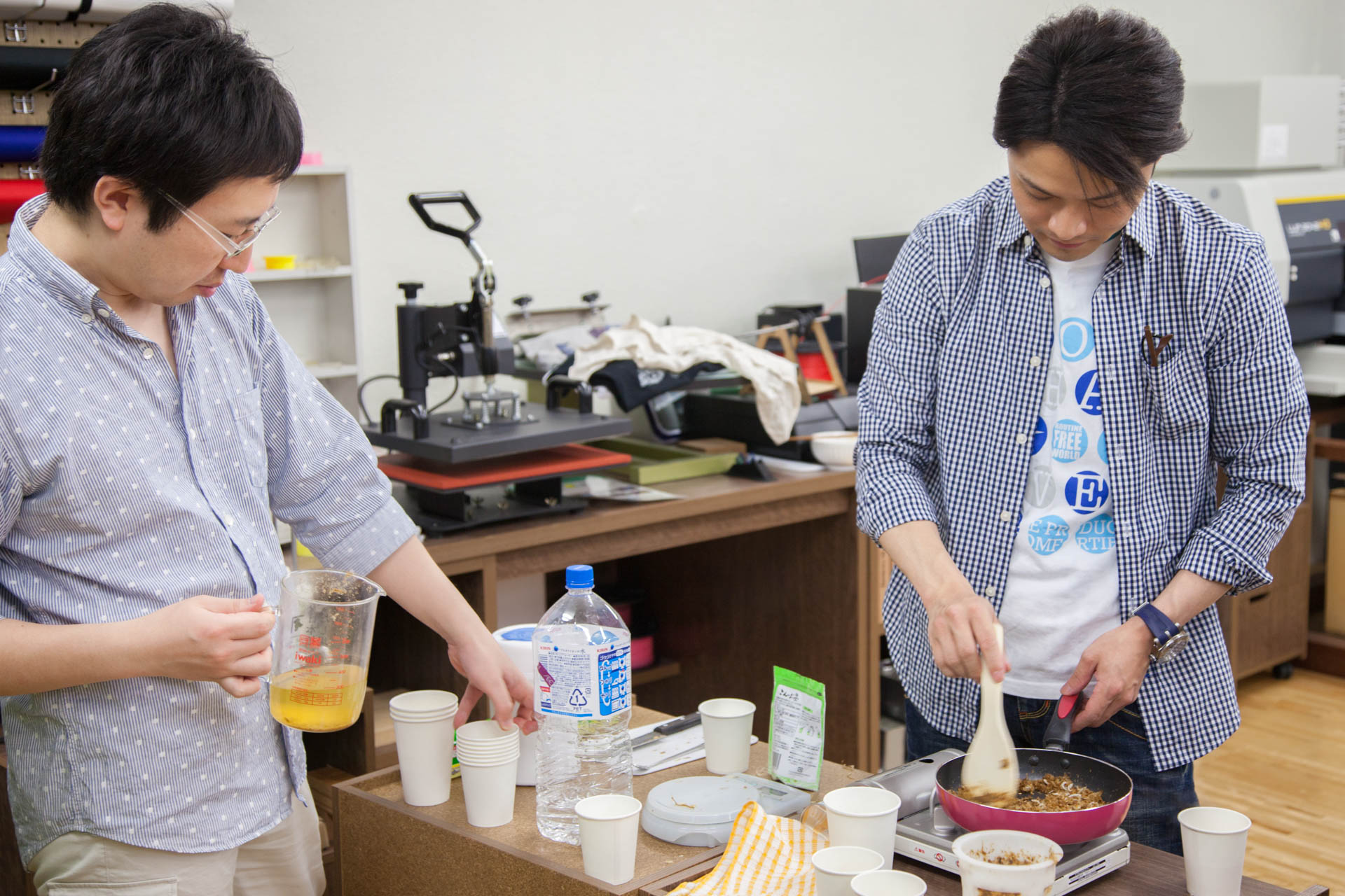 工場長と平野さんは夜な夜なcre8で土鍋ごはん会。