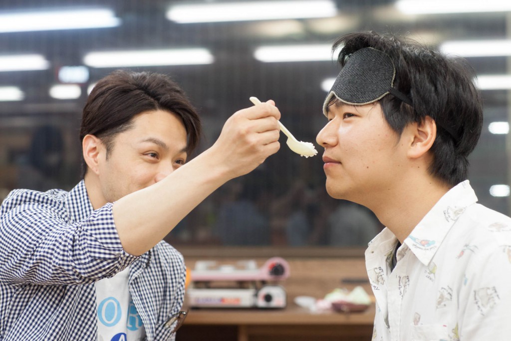 最初にアイマスクをした状態で1種類お米を食べていただき、