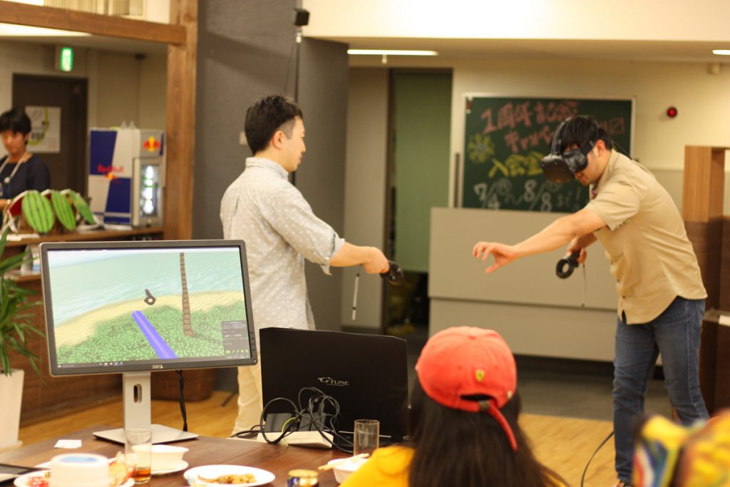 1人はヘッドマウントディスプレイを装着し、指示を出します。